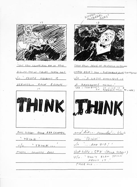 After being left to rot for twenty-five years on VHS tape, the never-whispered-about, seldom remarked upon, subterranean, almost-sorta-kinda-maybe minor classic short, Think and Die, has resurfaced on the Internet to almost universal indifference.